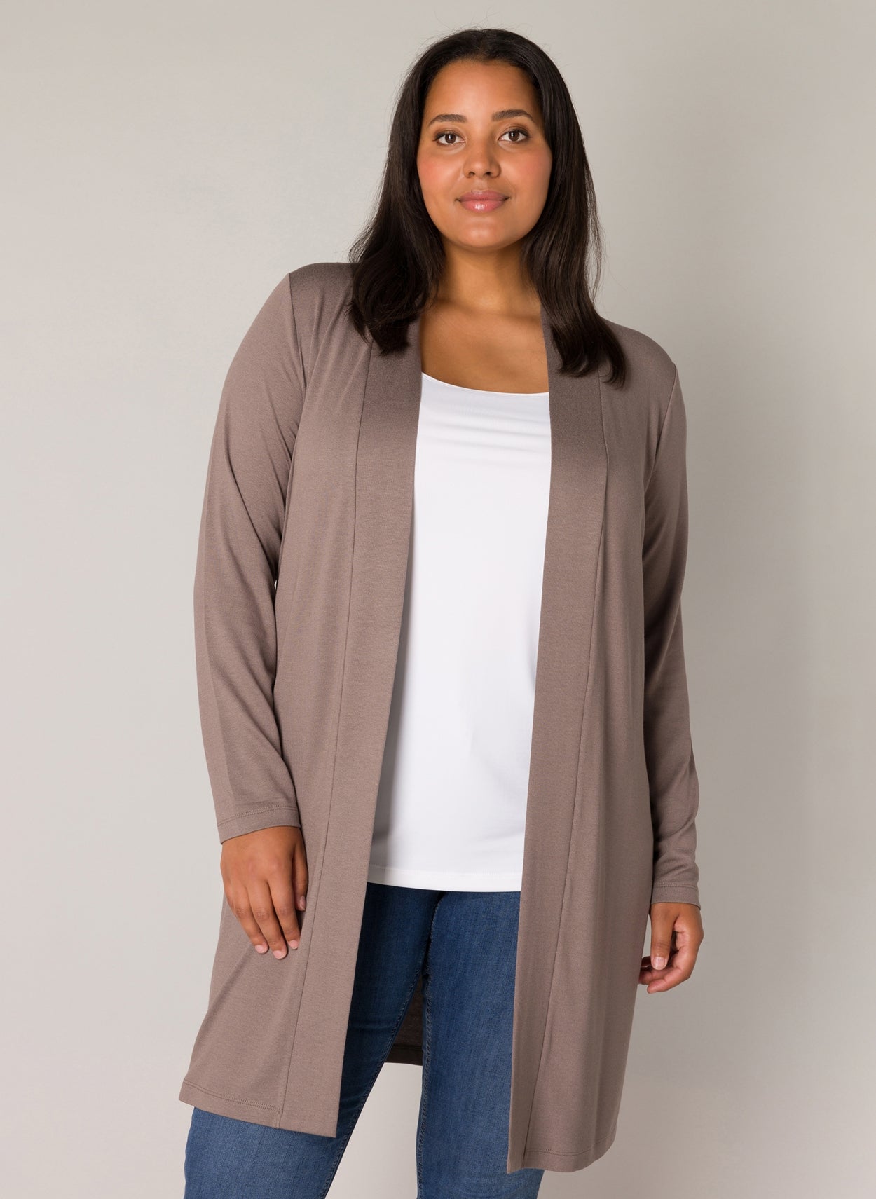 Base level curvy Lange Taupe Vest 7000001