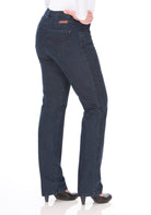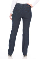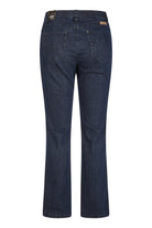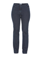 Deze donkere denim broek van K'Brand heeft een casual look met een comfortabele pasvorm. De jeans is uitgevoerd in een diepe, donkerblauwe wassing. De tailleband is elastisch en heeft een sierknoop en siersluiting aan de voorkant, wat zorgt voor een makkelijke instap. Je hebt twee functionele steekzakken aan de voorzijde voor kleine items en twee opgestikte zakken aan de achterzijde. Deze klassieke spijkerbroek is een nuchtere basis voor diverse outfits.