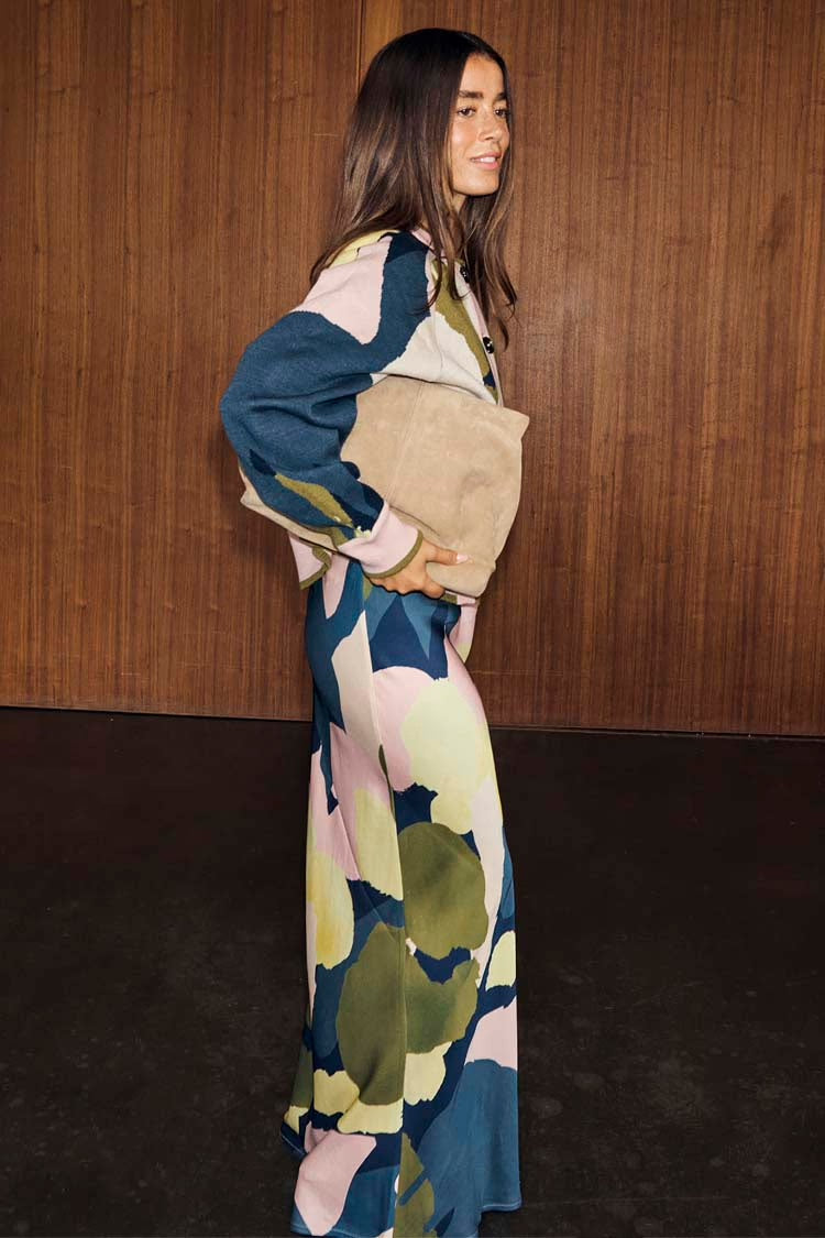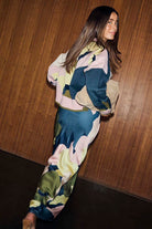 Deze Never Fully Dressed rok NFDSK878 Multi is een opvallende lange dames rok met een abstract dessin. De maxi rok valt soepel en heeft een hoog aandeel aan tinten zoals donkerblauw, olijfgroen, lichtroze en geel. Het kledingstuk heeft een rechte snit en reikt tot enkellengte. Dit is een comfortabele keuze als je zoekt naar een casual maar moderne look. De Never Fully Dressed rokken zijn bovendien beschikbaar in een breed matenbereik.Pasvorm en Stijladvies