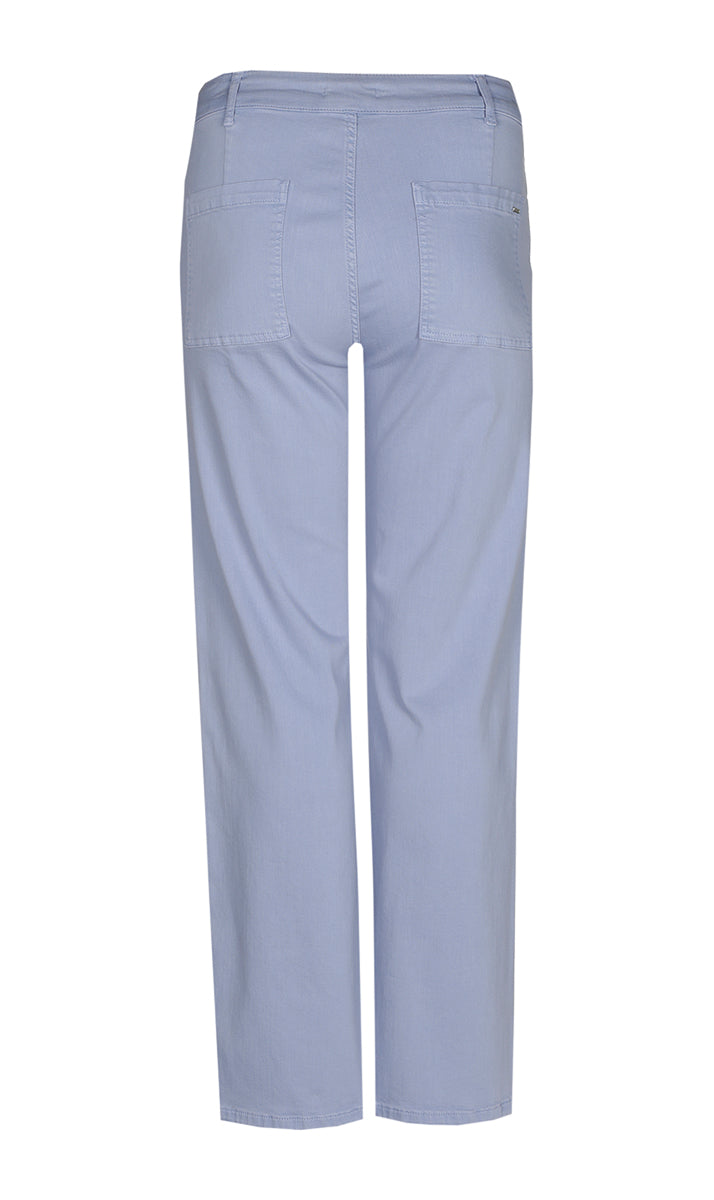 De rechte pasvorm van deze lichtblauwe broek zorgt voor een comfortabel silhouet. Combineer deze casual pantalon voor een open en frisse uitstraling met een eenvoudige witte top en lichte sneakers. Je kunt de broek ook gemakkelijk stylen met een heldere blouse of een zachte trui.Productkenmerken