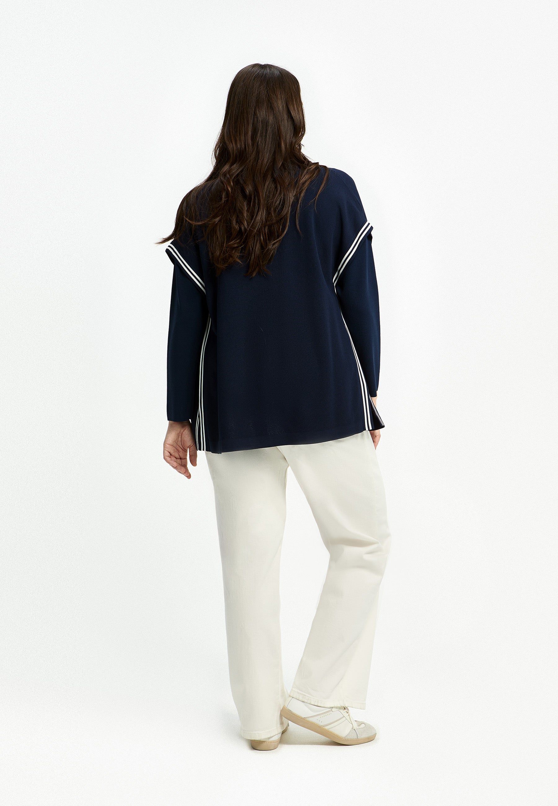 - Design - Gebreide stof met contrasterende streepdetails en een staande kraag