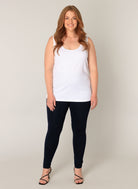 Wil je deze basis tregging casual dragen? Combineer de aangesloten broek dan met een lange, wijde top of een oversized blouse, net zoals de witte tanktop op de foto. Deze look straalt optimisme en openheid uit. Voor meer inspiratie en items specifiek voor jouw maat check je de volledige Base level curvy kleding collectie.Productkenmerken