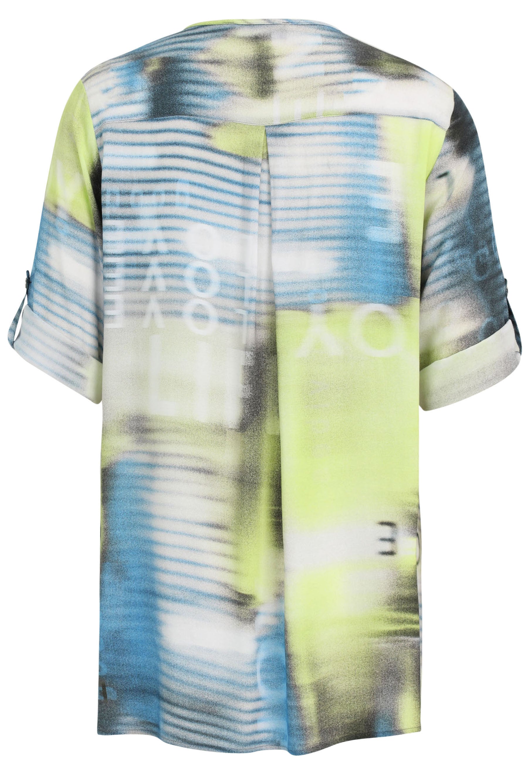 - Design - Abstracte print, V-hals, Roll-up mouwen met drukknoop