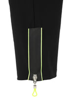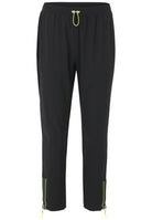 Deze zwarte broek van Doris Streich is uitgevoerd met een elastische tailleband. De pantalon is voorzien van een functioneel trekkoord in neongeel. De moderne enkellange damesbroek heeft een subtiele neongroene bies langs de onderkant en is afgewerkt met ritsen aan de zijkanten van de broekspijpen. Deze comfortabele broek is geschikt voor een casual, relaxte look.