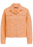 Deze Doris Streich Jas 356 196 in het oranje is een korte overgangsjas uitgevoerd in een spijkerstof-stijl. Dit casual jack heeft een doorknoopsluiting met opvallende, zilverkleurige metalen knopen. Je ziet twee opgestikte borstzakken met klep en knoop, aangevuld met twee handige steekzakken aan de voorkant. De omgeslagen kraag en de verticale stiknaden kenmerken het design van deze Doris Streich bovenkleding.Pasvorm en Stijladvies