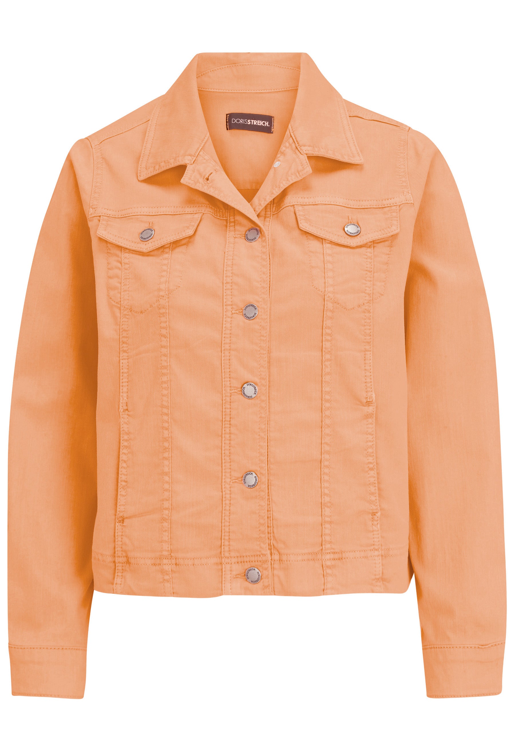 Je draagt dit korte oranje jack makkelijk als extra laag over een casual jurk of bij een lichte broek. De pasvorm is recht en de lengte valt tot de heup. Wil je meer zien van Doris Streich kleding?Productkenmerken