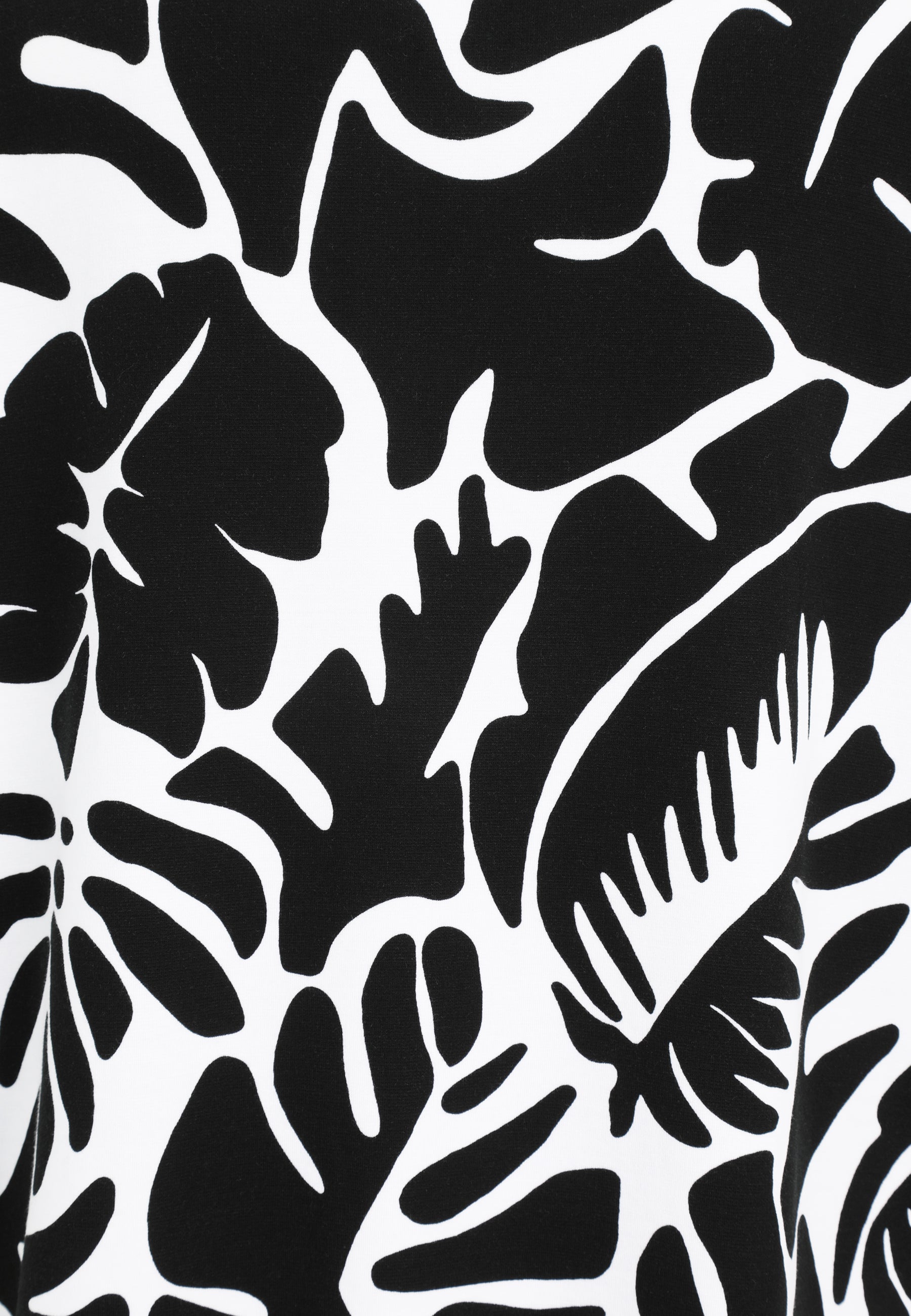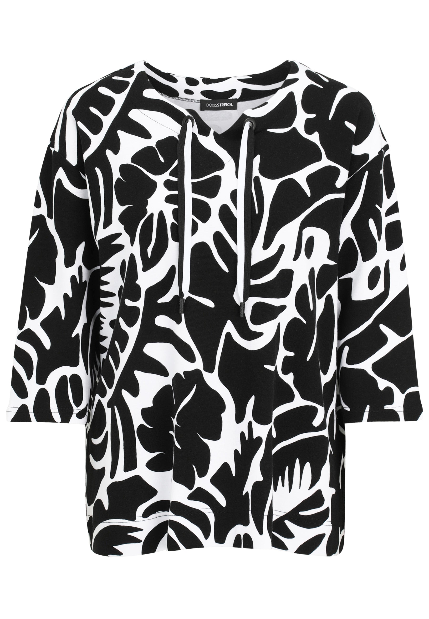 Dit Doris Streich T-Shirt 372 137 Zwart/Wit is een comfortabel bovenstuk met een grafisch bladerdessin in zwart en wit. Dit dames shirt van Doris Streich heeft een losvallende pasvorm en is voorzien van een ronde halslijn. De korte mouwen met omgeslagen boorden en het opvallende trekkoord aan de hals geven dit T-shirt een moderne, casual uitstraling.Pasvorm en Stijladvies