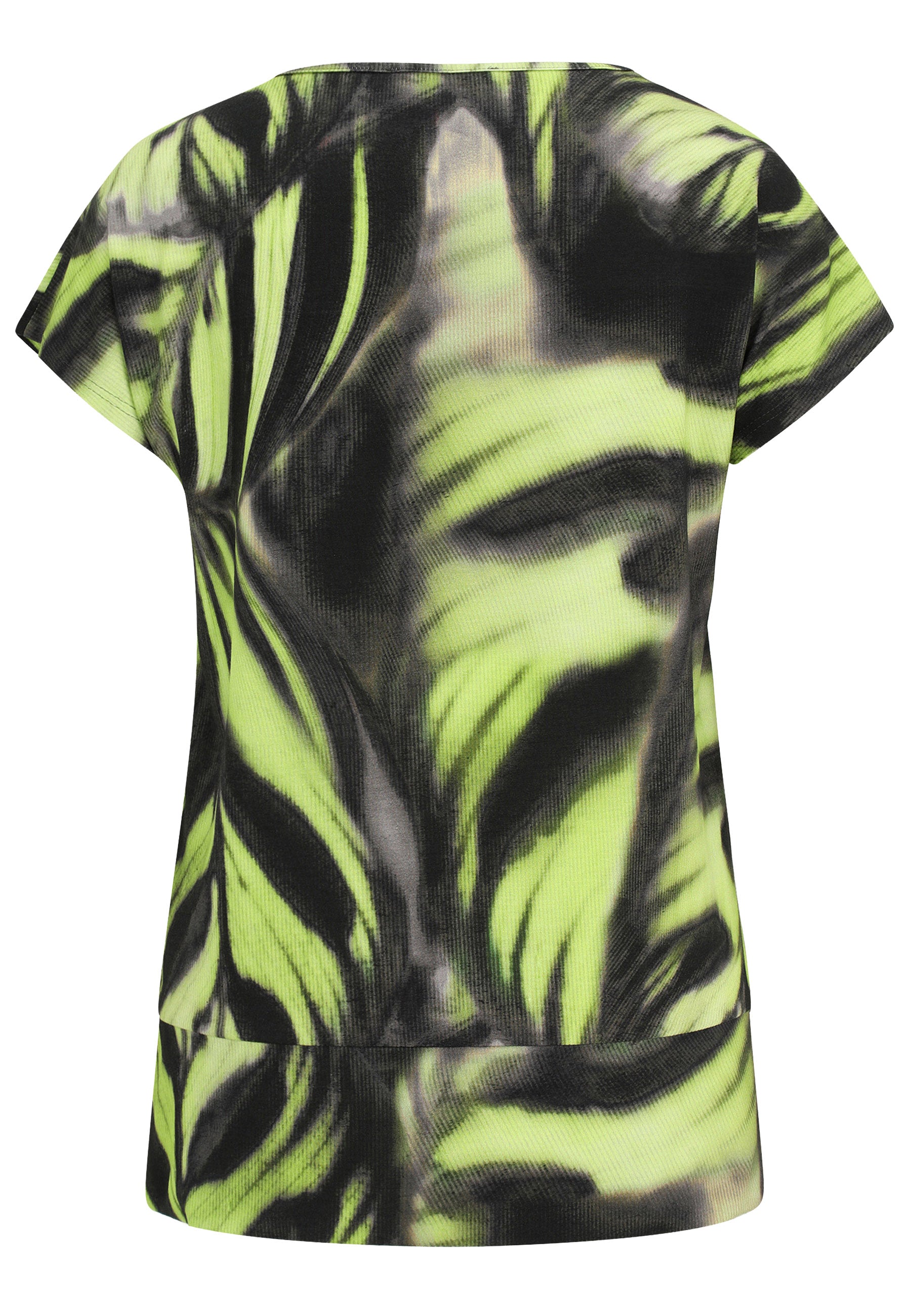 Dit T-shirt van Doris Streich (581 281) is uitgevoerd met een all-over abstract patroon in zwart en felgeel. Het korte-mouwen shirt heeft een ronde halslijn en is gemaakt van een stof met zichtbare ribbelstructuur. De zoom van dit bovenstuk is gelaagd en afgerond, wat zorgt voor een moderne afwerking. Dit Doris Streich T-shirt met levendige print voelt licht en comfortabel aan en is een casual aanvulling op je garderobe.