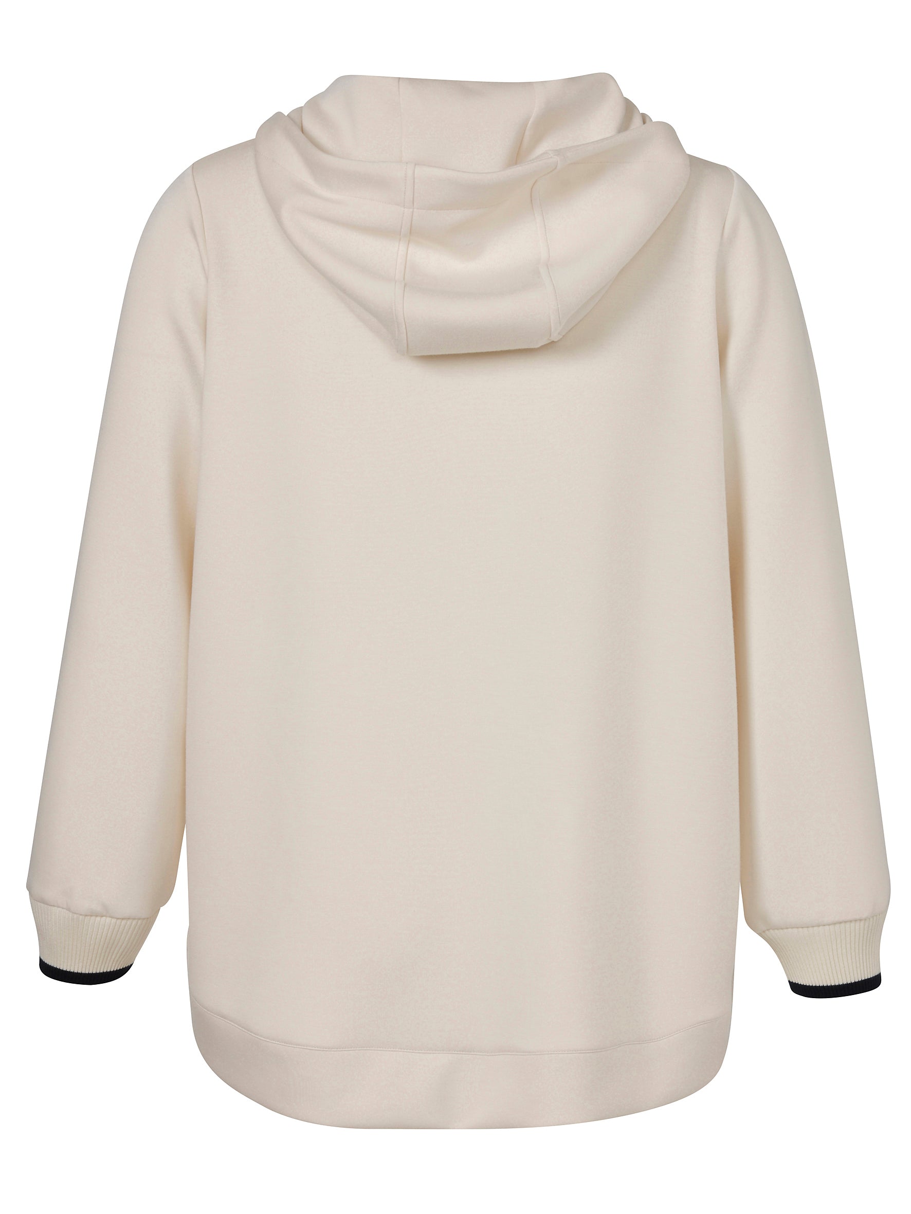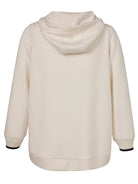 Dit moderne Via Appia Due sweatvest, model 2651753, is uitgevoerd in de kleur butter (crème) met navy accenten. Het casual jack is voorzien van een vaste capuchon en lange mouwen. De mouwuiteinden en de zoom zijn afgewerkt met ribgebreide boorden in de kleurcombinatie navy en butter. Op de linkermouw is een geborduurd hartdetail met de letters ‘ff’ aangebracht. Dit comfortabele vest is een ideale keuze voor een casual uitstraling.
