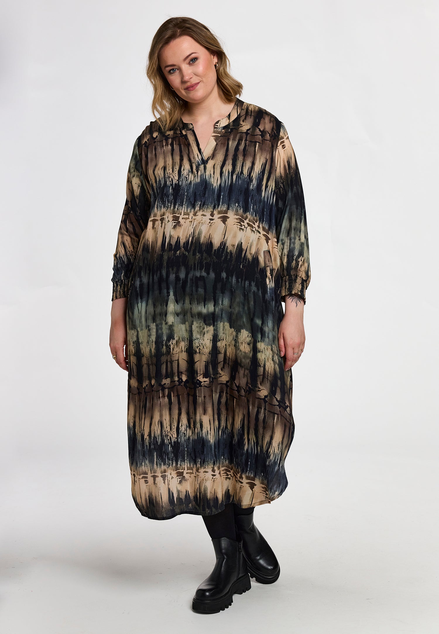 De Gozzip jurk G261038 heeft een rechte, loose fit pasvorm. Je combineert deze casual lange jurk makkelijk met stoere enkelboots voor een nuchtere, alledaagse uitstraling.Productkenmerken