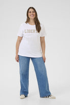 Wit T-shirt Kaffe curve 1206 Optical White met 'LIBERTY' Print