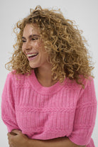 Kaffe Curve Gebreide Korte Mouwen Pullover Pink Power Melange 1302