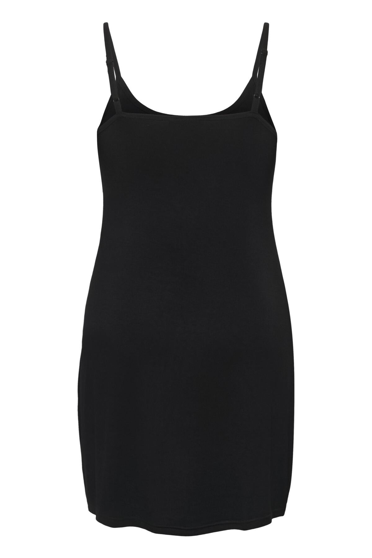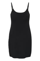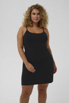 Je draagt deze zwarte slip dress van Kaffe Curve onder een jurk van dunne stof voor een glad resultaat. De pasvorm zorgt dat je bovenkleding soepel over het lichaam valt. Combineer het met andere items uit de collectie voor optimaal comfort gedurende de dag.