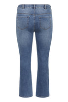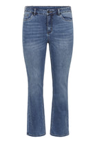 Deze medium blauwe denim broek van Kaffe curve is een toevoeging aan je garderobe. Het ‘kick flare’ model, een spijkerbroek met een licht uitlopende pijp, heeft een cropped lengte die tot boven de enkel valt. De jeans sluit met een rits en een knoop aan de voorzijde. Je hebt de beschikking over vier functionele zakken. Dit item is onderdeel van de DK Company collectie.Pasvorm en Stijladvies