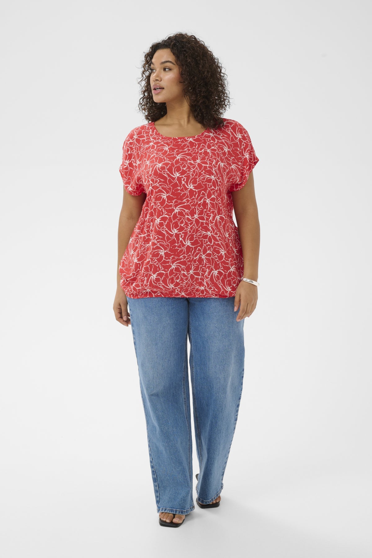 Kaffe curve Poppy Red Blouse met Chalk Flower Dessin