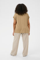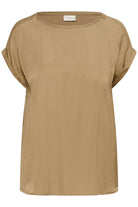 Dit casual bovenstuk van Kaffe curve is een T-shirt blouse uitgevoerd in de neutrale tint Petrified Oak. Het effen shirt, model 10583812, heeft een soepele, losvallende pasvorm die comfortabel draagt. De halslijn is een klassieke ronde hals en de korte mouwen zijn omgeslagen. Dit neutrale design maakt het een perfecte basic t-shirt voor je dagelijkse look.