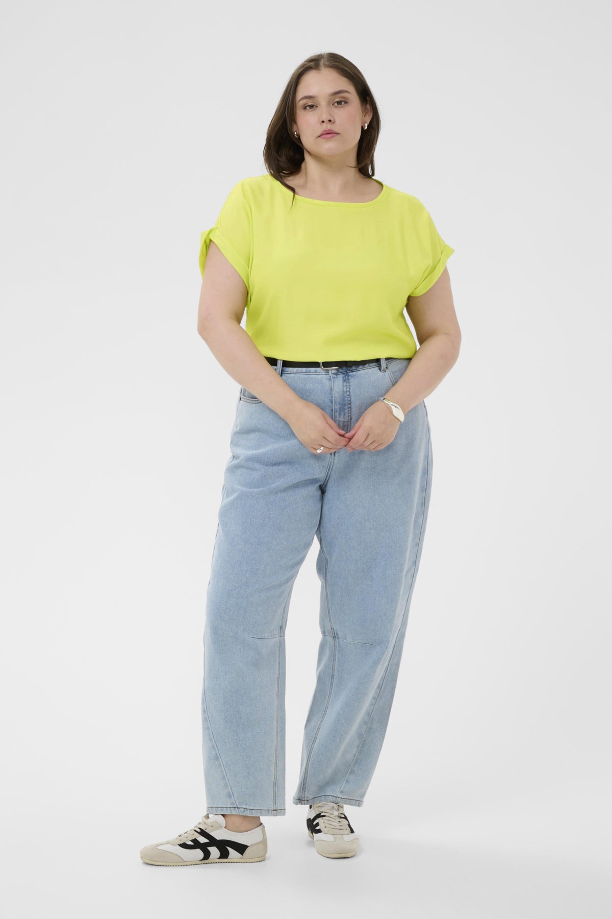De Kaffe curve Blouse 10583812, een must-have shirt van DK Company, komt in de opvallende kleur Wild Lime. Deze comfortabele top, perfect voor een casual look, heeft een wijde ronde halslijn en korte mouwen met een vaste omslag. Het effen dessin maakt deze jersey top een veelzijdig kledingstuk. Je draagt dit T-shirt makkelijk voor een optimistische en open stijl.