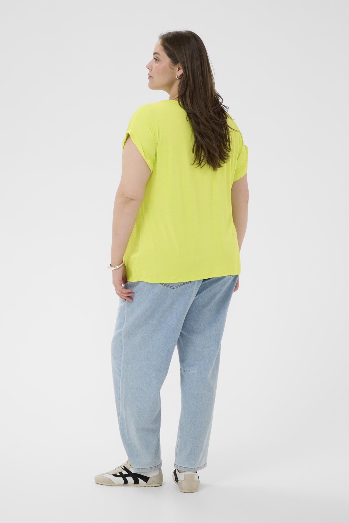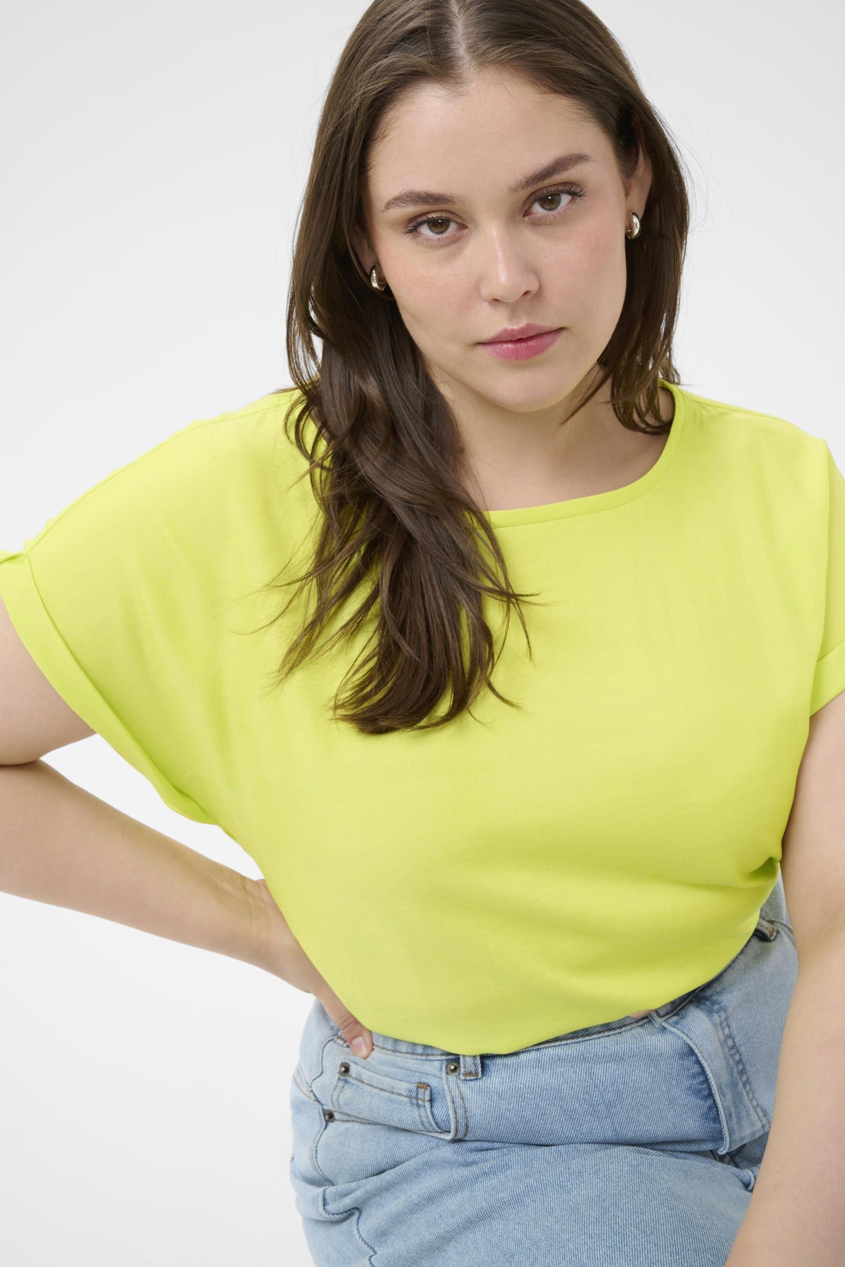 Dit moderne T-shirt heeft een losvallende pasvorm die bijdraagt aan het comfort. De felle kleur Wild Lime geeft je outfit direct een boost. Combineer deze casual top met een high-waist jeans of een lichte pantalon voor een zomerse uitstraling. Ben je fan van de designs van Kaffe curve? Ontdek dan de volledige collectie Kaffe curve kleding.