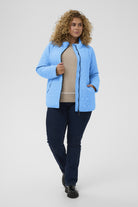Deze gewatteerde jas heeft een normale, rechtvallende pasvorm. Je combineert de lichtblauwe jas gemakkelijk voor een nuchtere, casual look. Draag de korte jas bijvoorbeeld met een donkere broek en een neutrale gebreide trui. Bekijk de gehele collectie van Kaffe curve voor bijpassende items in grote maten.