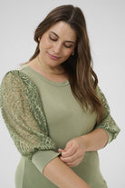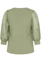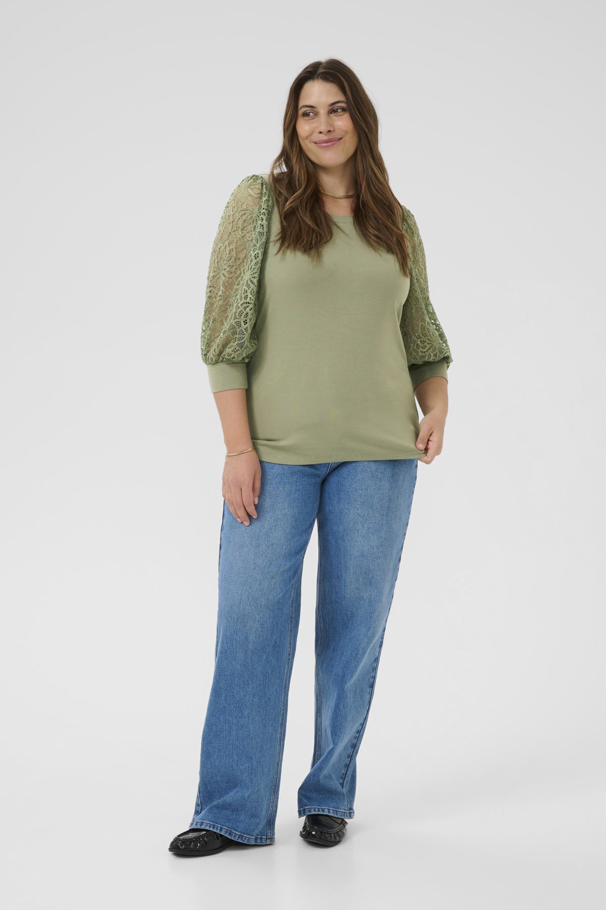 • Materiaal - Hoofdmateriaal jersey, mouwen kant/broderie