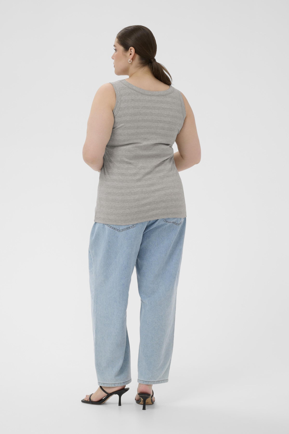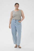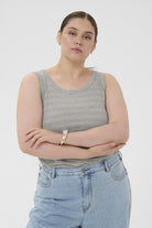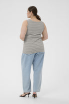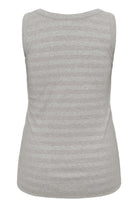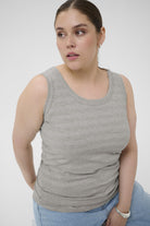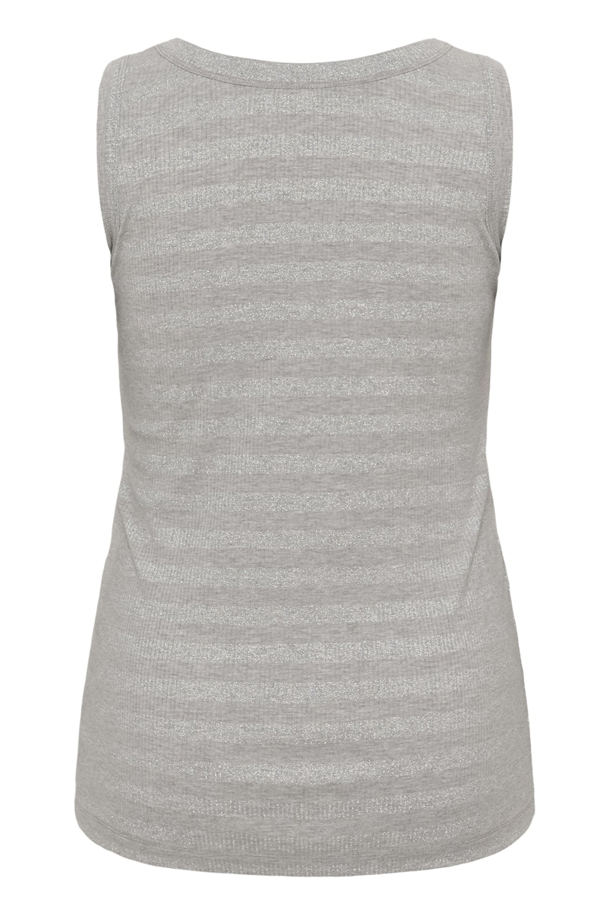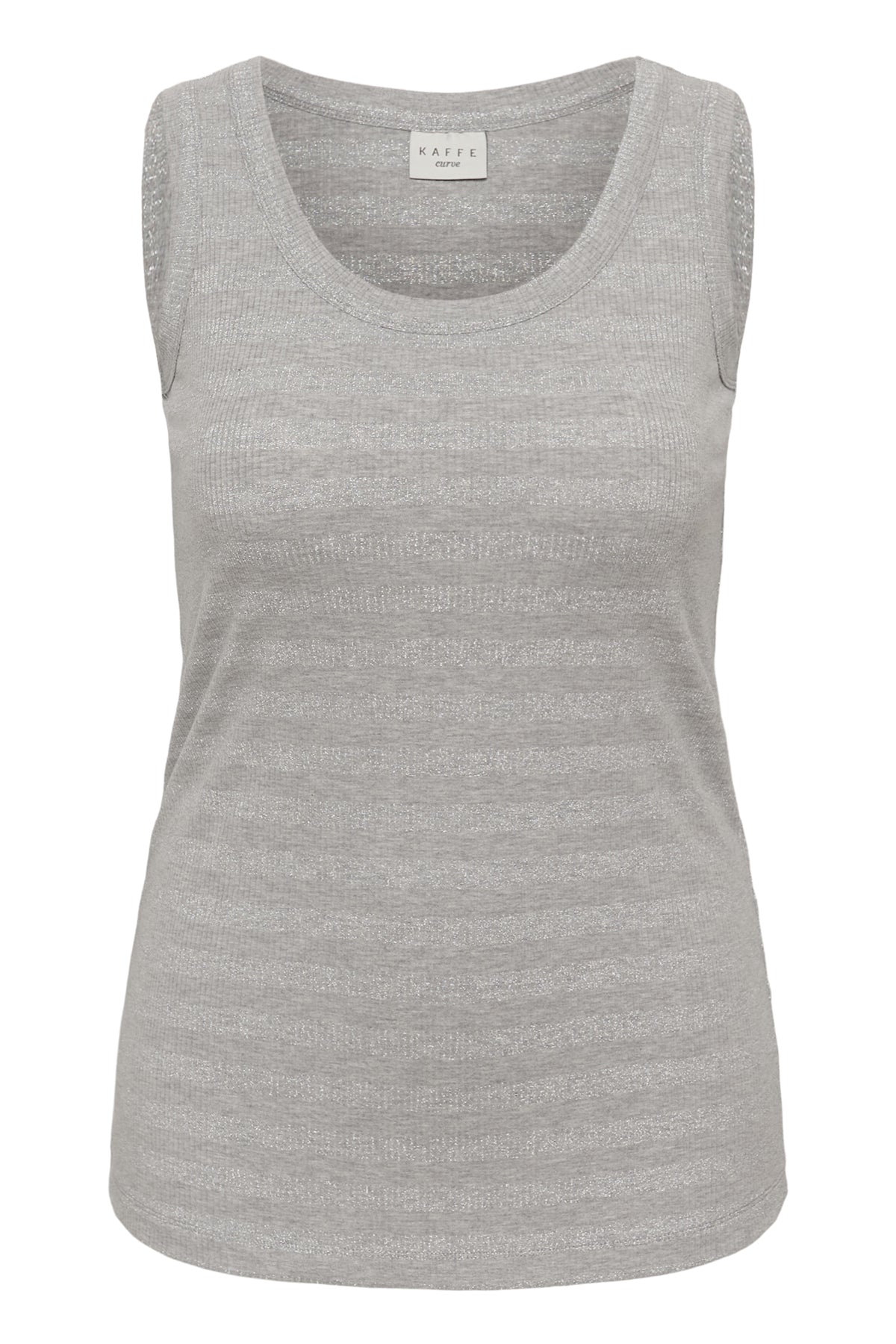 Deze mouwloze top van DK Company, onderdeel van de Kaffe curve collectie, is uitgevoerd in de kleur Dark Silver. Het kledingstuk heeft een fijne horizontale ribstructuur en is voorzien van een klassieke ronde halslijn. De tanktop heeft brede schouderbanden en valt tot op de heup. Dit basisstuk is comfortabel en licht van gewicht, ideaal wanneer je zoekt naar een essentiële mouwloze top.