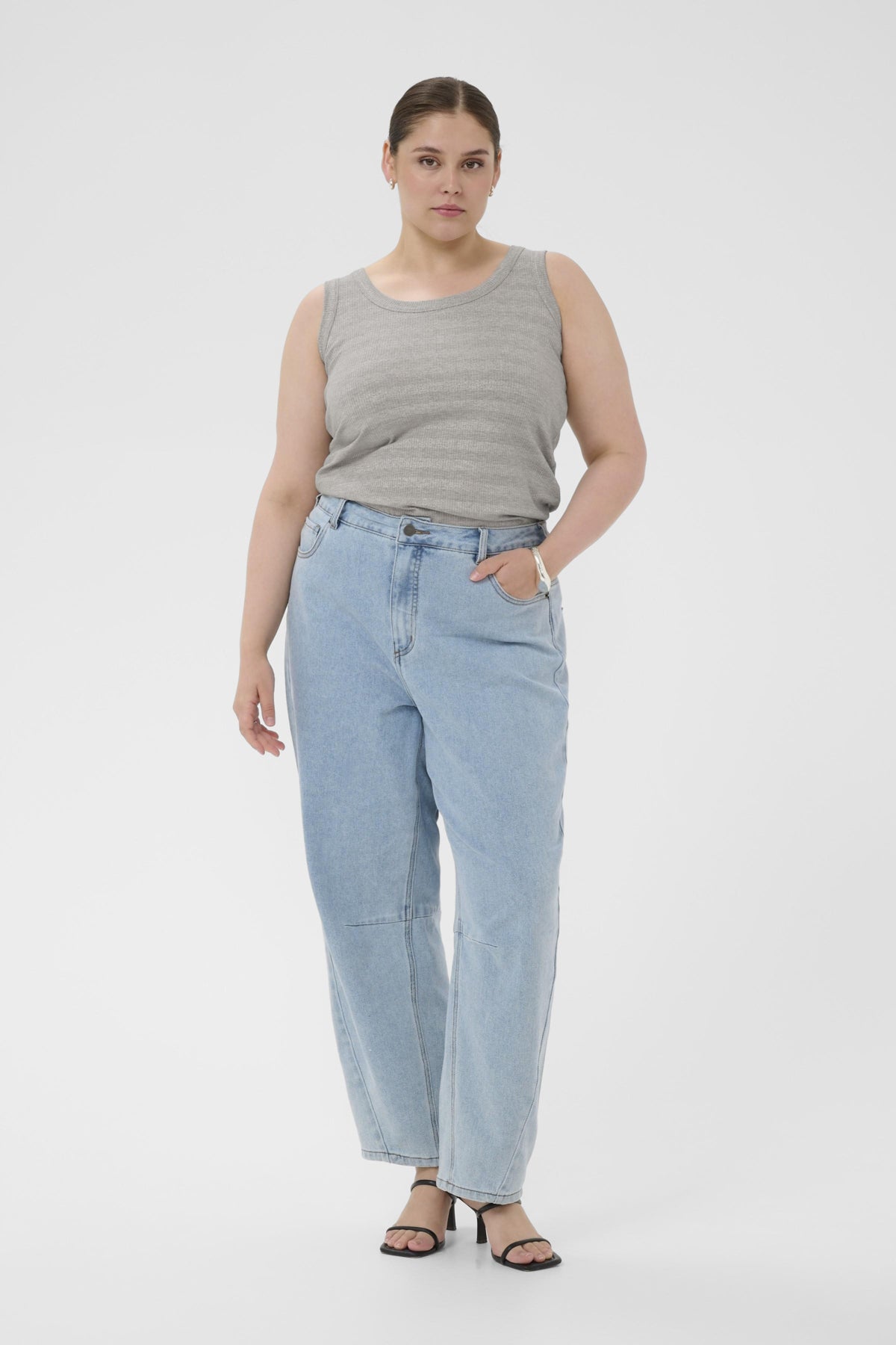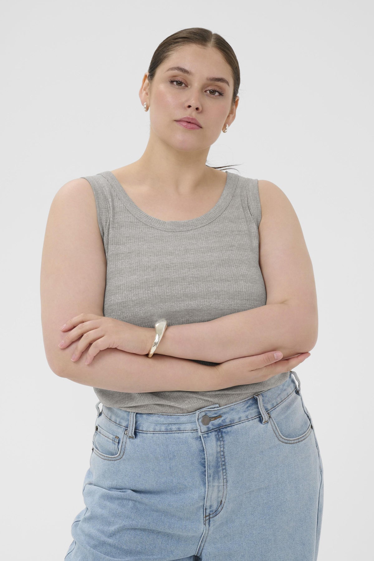 De pasvorm van deze top is aansluitend. Door de basisuitvoering kun je dit item makkelijk combineren. Draag de donkerzilveren top met een losvallende pantalon of wide-leg jeans voor een moderne, casual uitstraling. Ontdek meer mode-items van Kaffe curve om jouw garderobe aan te vullen.