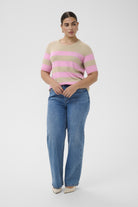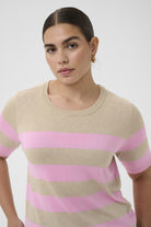 Kaffe curve Gebreide Trui 10582914 in Feather Mel/ Pink Wide Stripe