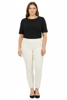 Deze PlusBasics Pantalon in Kit Beige is een comfortabele damesbroek met een slanke pasvorm. De pantalon is ontworpen met een elastische tailleband die zorgt voor draagcomfort. De voorzijde is voorzien van subtiele stiknaden die een modern design element toevoegen. Aan de achterkant zijn twee paspelzakken verwerkt en aan de zijkant vind je functionele steekzakken. Het is een casual kledingstuk van het merk PlusBasics dat makkelijk te combineren is.