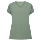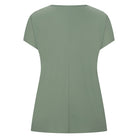 De PlusBasics Linde top heeft een recht model en een subtiele V-hals. Dit item is uitgevoerd in een egale groene tint en heeft korte mouwen die licht over de schouders vallen. Aan de achterzijde bevindt zich een verticale naad over de gehele lengte. Het materiaal bestaat uit een gladde weving zonder prints of applicaties wat zorgt voor een rustige uitstraling in je dagelijkse outfit.