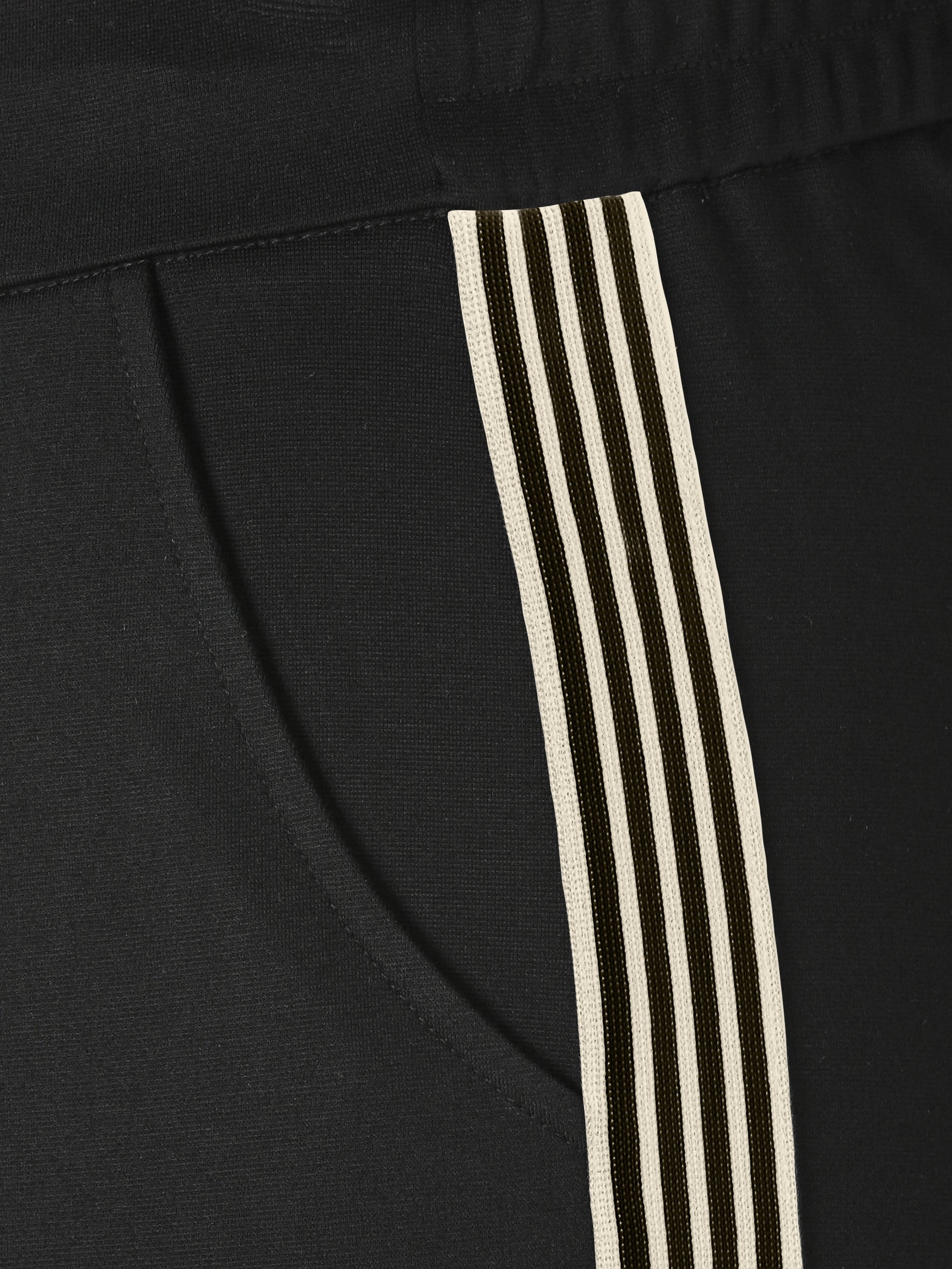 Deze casual damesbroek van Via Appia Due is uitgevoerd in zwart en heeft een moderne look. De pantalon is voorzien van een opvallende bies langs de zijkant van het been. De bies bestaat uit vier donkere, verticale strepen op een vanillekleurige ondergrond. De broek beschikt over afgeronde steekzakken aan de voorzijde. Het ontwerp met de strakke tailleband biedt een relaxte uitstraling voor dagelijks gebruik.