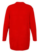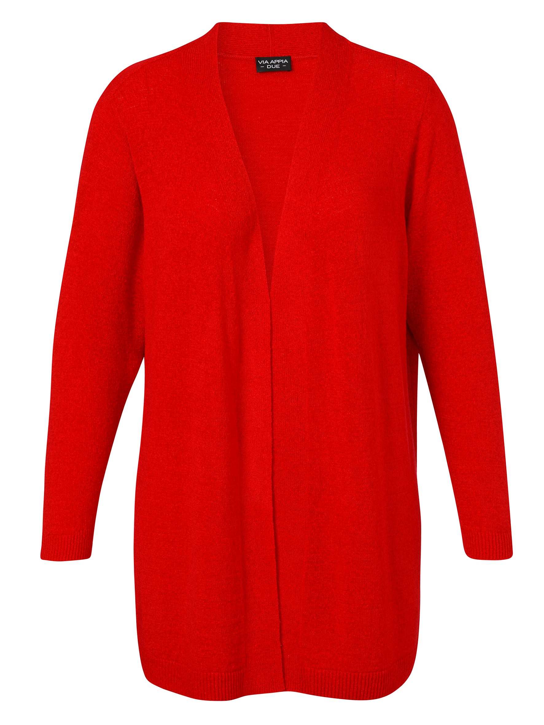 Dit lange vest valt recht en heeft een normale pasvorm die de heupen bedekt. Je combineert deze rode cardigan makkelijk met neutrale kleuren. Draag het bijvoorbeeld over een zwarte of witte top met een straight fit denim jeans om een comfortabele en nuchtere look te creëren. Ontdek meer mode voor grote maten van Via Appia Due.