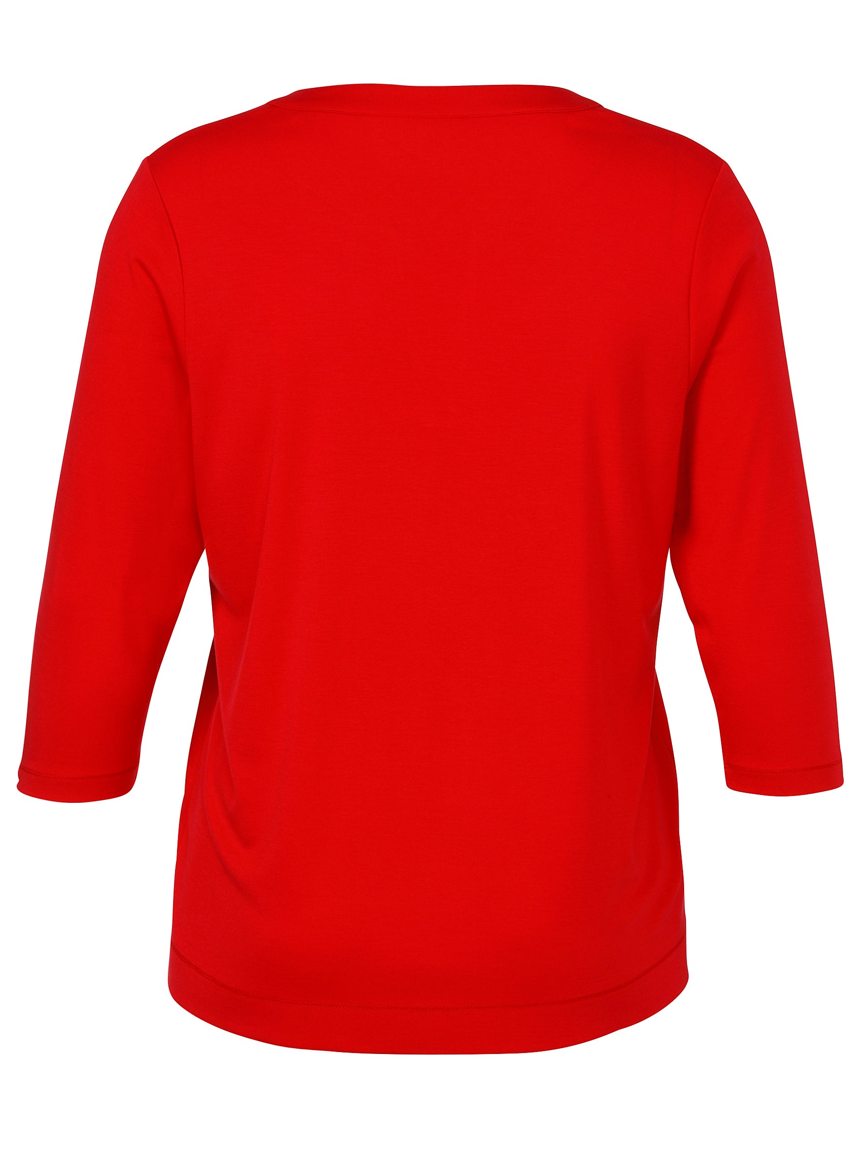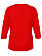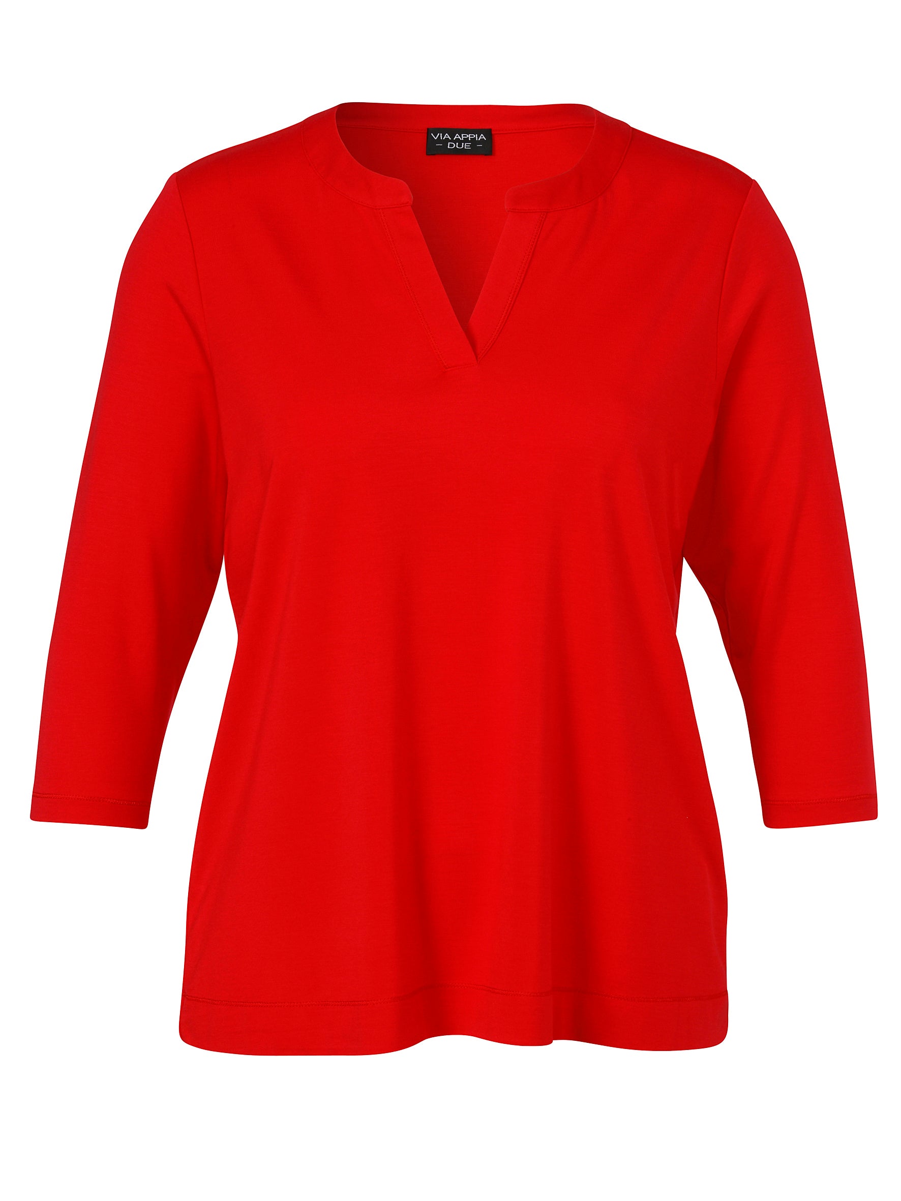 Dit Via Appia Due damesshirt in de kleur rood heeft een casual uitstraling en is een veelzijdige toevoeging aan je garderobe. Het shirt is uitgevoerd met een korte V-hals, afgewerkt met een smalle gestikte rand. De 3/4 mouwen geven dit T-shirt de functionaliteit van een comfortabele longsleeve. Het effen design en het jersey materiaal zorgen ervoor dat het shirt soepel valt en prettig draagt.Pasvorm en Stijladvies
