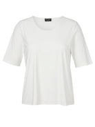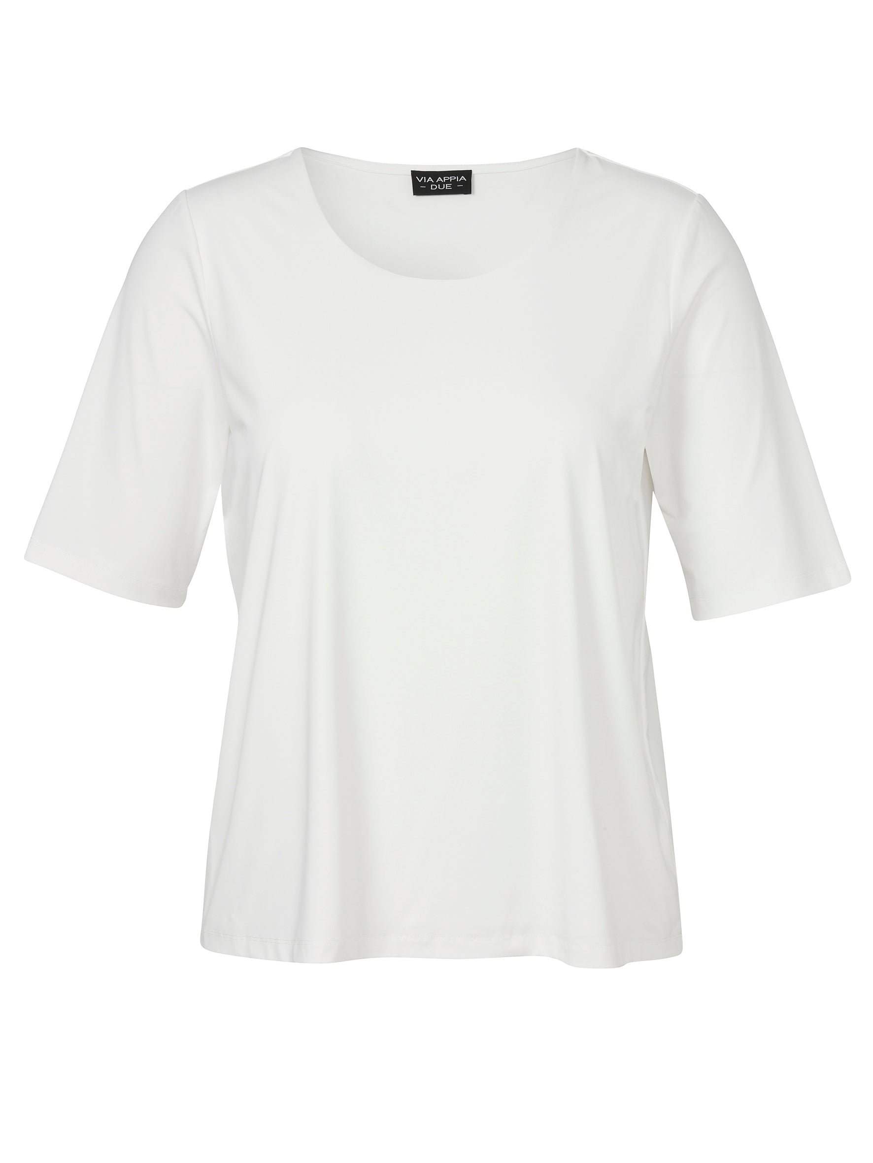 Dit ecru T-shirt van het merk Via Appia Due, model 2611727, is een essentieel kledingstuk in jouw garderobe. Het shirt is effen van kleur en heeft een ronde halslijn. Dit basic shirt is voorzien van korte mouwen die tot op de elleboog vallen. De soepele stof zorgt voor een comfortabele pasvorm.