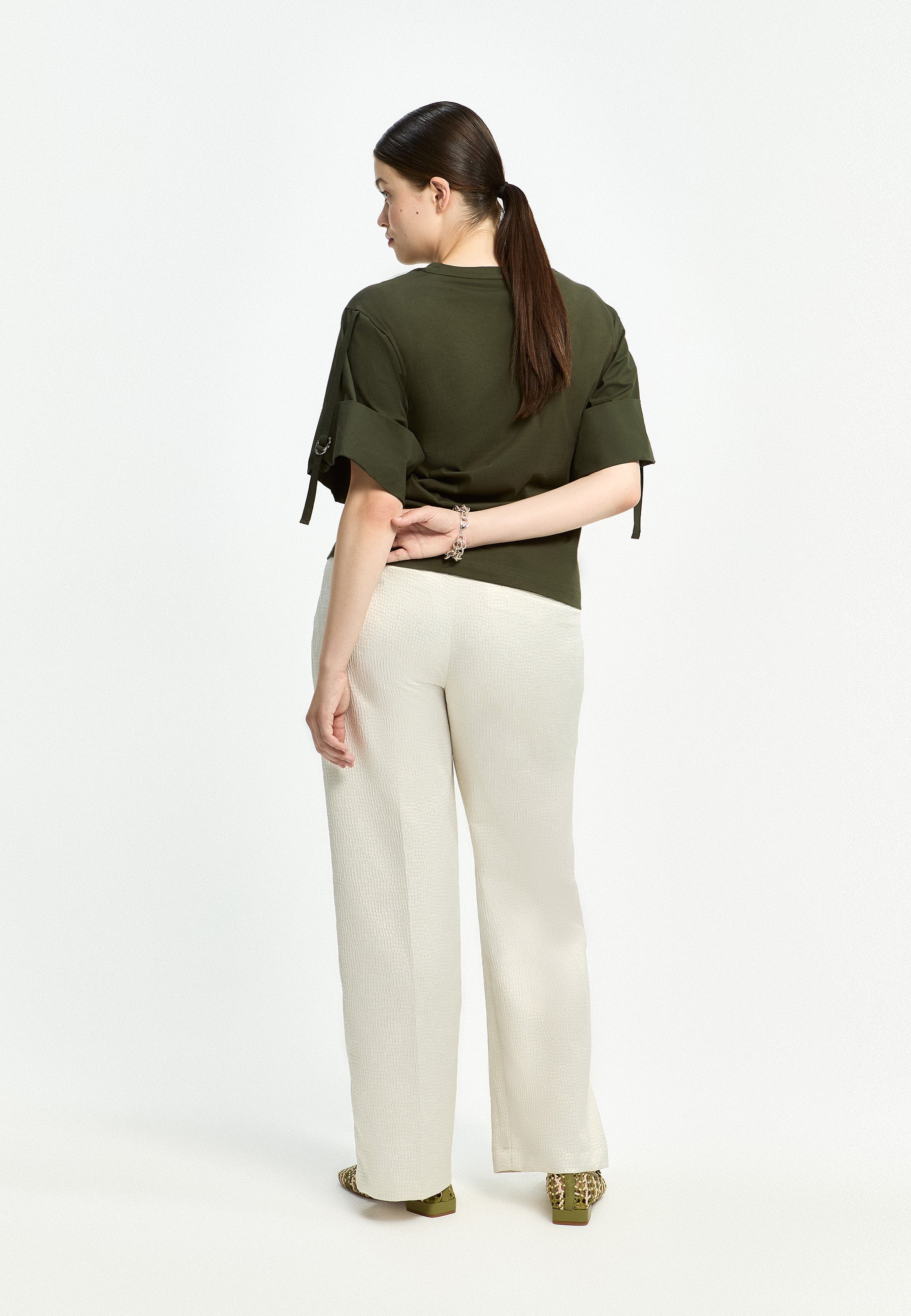 - Design - Subtiel geweven dessin, deels elastische tailleband achter