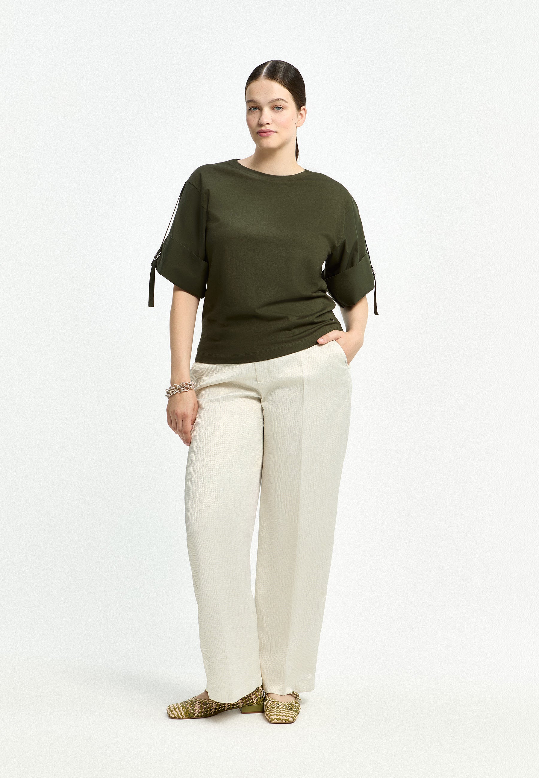 De relaxte pasvorm met rechte pijp maakt dit een toegankelijke broek voor veel lichaamsvormen. Je combineert de witte pantalon makkelijk met een contrasterende gekleurde top en platte zomerschoenen voor een moderne, casual uitstraling. Ontdek meer items van Xandres kleding om je outfit compleet te maken.Productkenmerken