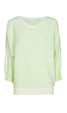Deze gebreide trui van Xandres heeft een opvallend gestreept dessin in lichtgroen en wit. Het kledingstuk is voorzien van een ronde halslijn en kenmerkt zich door driekwart vleermuismouwen die eindigen in een ribgebreide boord. Dit model heeft een wijdere pasvorm en een rechte snit. De korte lengte maakt deze Xandres trui een casual item voor je garderobe. Dit gestreepte exemplaar voelt comfortabel en licht aan, perfect voor een ontspannen look op warmere dagen.