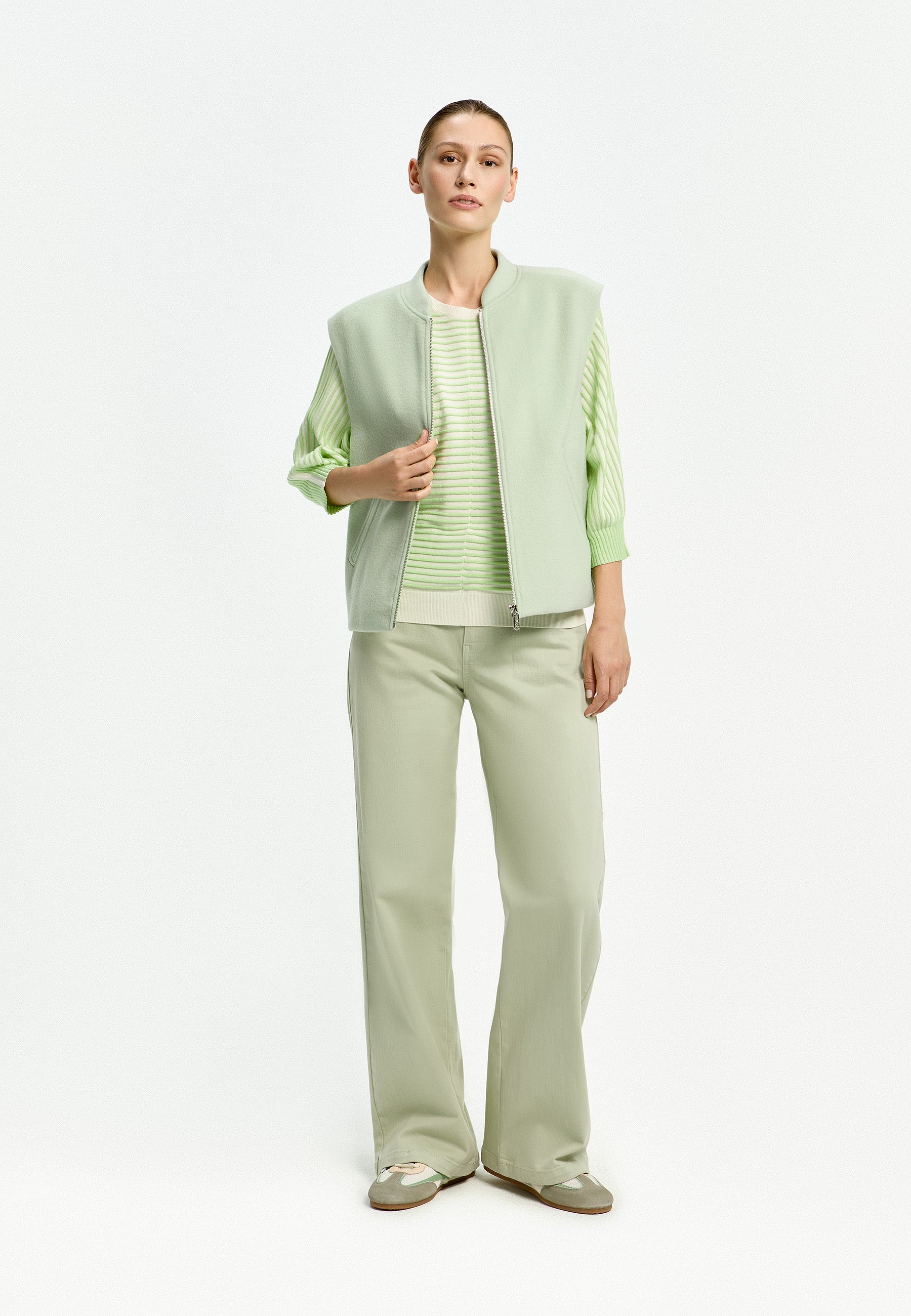 Xandres Gestreepte Groene Dames Trui 29026-03