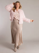 Dit korte jasje is een veelzijdig kledingstuk dat je eenvoudig combineert over een blouse met print en een lange rok voor een gelaagde look, zoals te zien is op de foto. Zo creëer je snel een casual en toegankelijke outfit. Ontdek meer van de positieve en nuchtere mode van Yest Curve kleding om je garderobe aan te vullen.