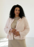 De Yest Curve Blazer A006255 in de kleur roze is een kort jasje met een zachte, shaggy textuur. Dit roze vest met lange mouwen heeft een ronde halslijn zonder kraag. De blazer sluit in het midden door middel van een discrete haaksluiting. Dit casual kledingstuk van het merk Yest Curve heeft een moderne uitstraling en is ontworpen om flexibel en comfortabel te dragen te zijn.