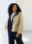De korte lengte van deze jas is ideaal voor een gelaagde, casual look. Combineer deze jas met donkere pantalons voor een nuchtere, moderne uitstraling, zoals op de foto. Bekijk de gehele collectie van Yest Curve voor bijpassende items.
