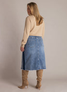 Deze denim rok van Yest Curve heeft een A-lijn pasvorm met een over de knie vallende lengte. Door de moderne belijning combineer je deze rok gemakkelijk met enkellaarsjes of hoge laarzen. Voor een casual uitstraling draag je er een basic gebreide trui of een vest bij.