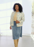 Deze Yest Curve denim rok is een casual jeansrok met een lichte wassing. Het model toont aan de zijkanten verticale contrastpanelen in donkerder denim. De spijkerrok heeft een klassieke vijf zakken indeling, met twee steekzakken aan de voorzijde en twee opgestikte zakken aan de achterzijde. De rok sluit aan de voorkant met een ritssluiting en een knoop. De onderzijde is afgewerkt met een gerafelde zoom. Dit is een comfortabele rok die makkelijk past bij jouw alledaagse looks.