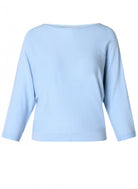 Deze gebreide trui van het merk Yest Curve is een casual item uitgevoerd in een effen lichtblauwe tint. Het design kenmerkt zich door een brede boothals en driekwart mouwen. Zowel de manchetten als de onderkant van deze lichtblauwe sweater zijn afgewerkt met ribgebreide boorden. De trui valt soepel en biedt een relaxte pasvorm, perfect voor een toegankelijke, comfortabele look.Pasvorm en Stijladvies