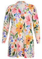 De YOEK dames colbert is een lange blazer met een opvallend bloemen dessin in verschillende kleuren. Dit jasje heeft lange mouwen en een klassieke reverskraag. De sluiting bestaat uit drie knopen in een goudkleurige uitvoering, die subtiel verwerkt zijn in de voorzijde van deze comfortabele blazer. Het Multi bloemenpatroon bestaat uit tinten als geel, roze, paars en groen op een lichte ondergrond.Pasvorm en Stijladvies