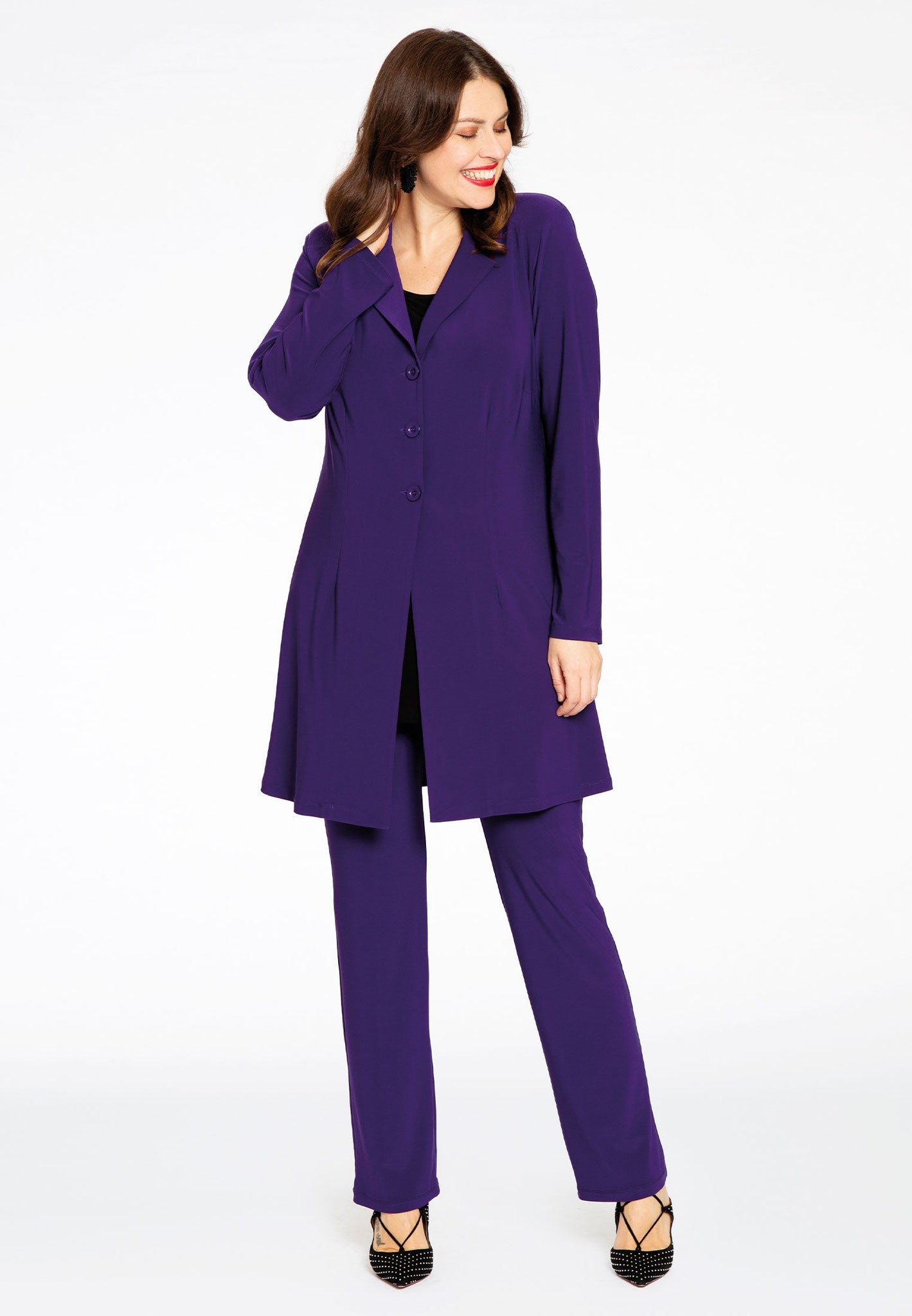 De pasvorm van deze YOEK legging is aansluitend en valt lang. Je combineert deze paarse nauwsluitende broek makkelijk met een lange top of een bijpassende blazer, zoals te zien op de foto, voor een complete set. Bekijk de gehele collectie van YOEK voor meer casual kleding in grote maten.