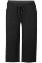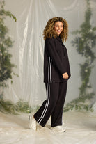 Deze Zhenzi broek in het zwart kenmerkt zich door een wijde pasvorm en rechte pijpen. De trainingsbroek is uitgevoerd met een elastische tailleband en een verstelbaar trekkoord als sluiting. Voor een sportieve uitstraling heeft deze damesbroek twee verticale witte strepen, ook wel bies, aan de zijkanten. Je bergt kleine spullen op in de steekzakken aan de voorzijde van deze comfortabele sweatpants.