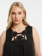 - Design - Mouwloos model met decoratieve bloemenapplicatie bij de hals