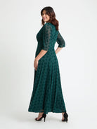 De Donkergroene Scarlett & Jo Maxi-Jurk met Flock Dessin L8410