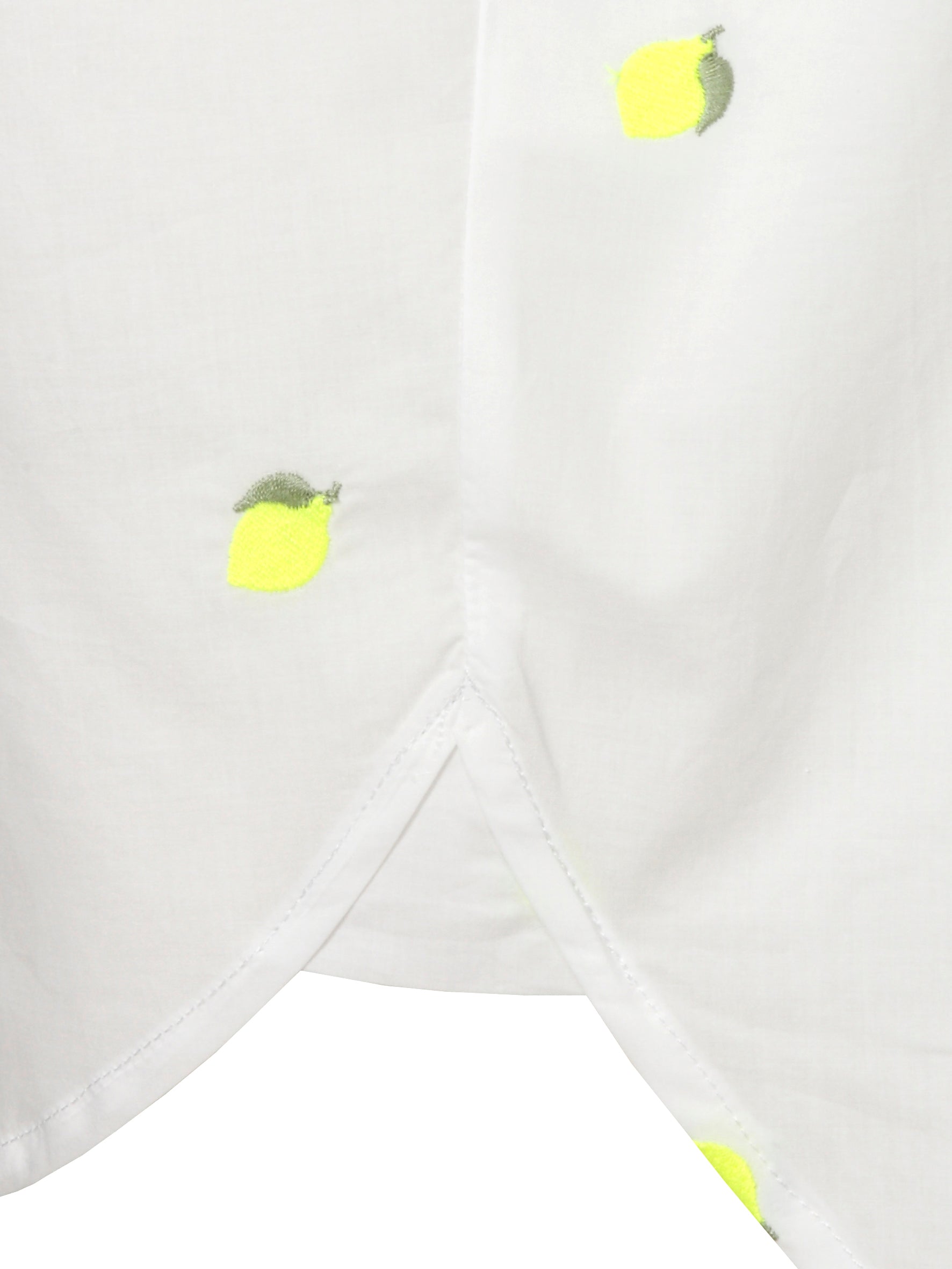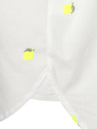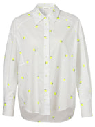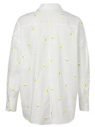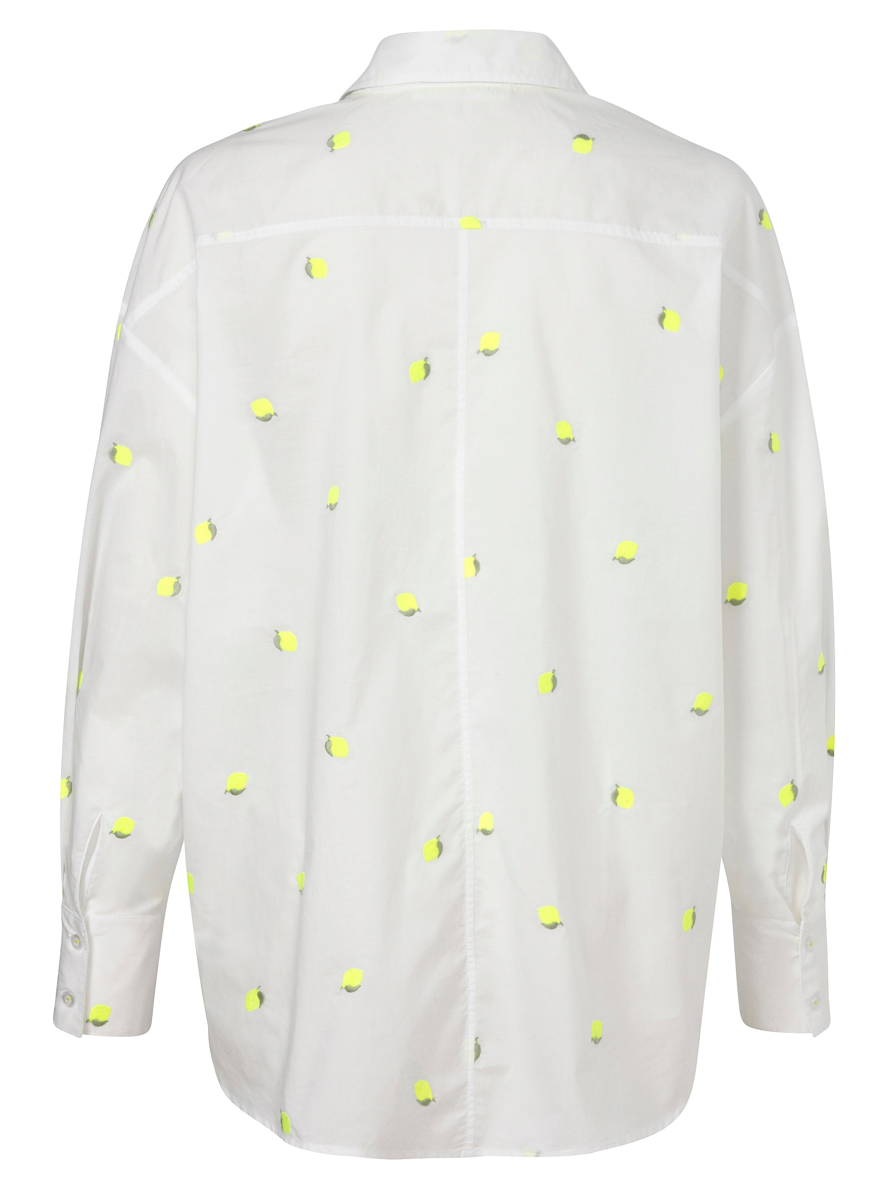 Dit witte overhemd van Eiszeit is voorzien van lange mouwen en een klassieke kraag. De blouse heeft een all-over patroon van geborduurde citroenen in de kleuren neon geel en groen. De voorkant sluit met een doorlopende knoopsluiting. Deze casual blouse heeft een rechte pasvorm en is afgewerkt met manchetten met knoopsluiting. De afgeronde zoom is voorzien van kleine splitten aan de zijkant.