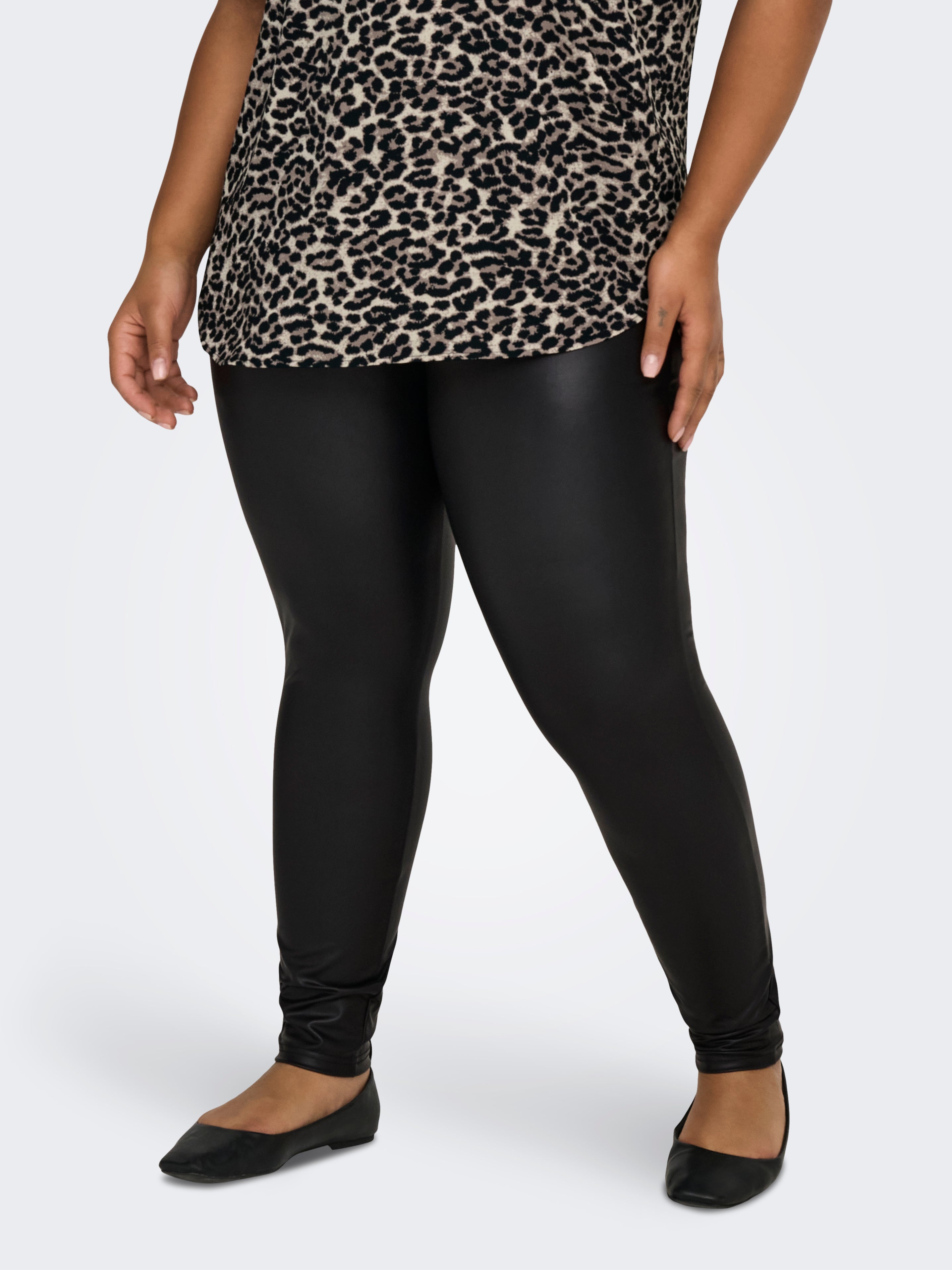 Deze aansluitende zwarte pantalon van Only Carmakoma is een comfortabele basisbroek met een eigentijdse uitstraling. De dames legging, die deel uitmaakt van de Bestseller collectie, heeft een gecoate look die lijkt op imitatie leer. Dit kledingstuk is uitgevoerd met een hoge taille en een brede elastische tailleband, waardoor de broek een comfortabele, nauwsluitende pasvorm behoudt.Pasvorm en Stijladvies